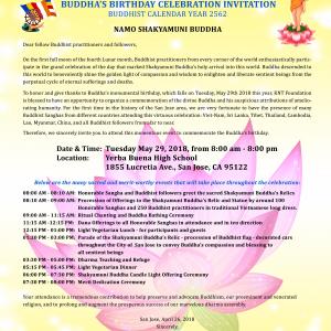 Therefore, we sincerely invite you to attend this momentous event to commemorate the Buddhas birthday.